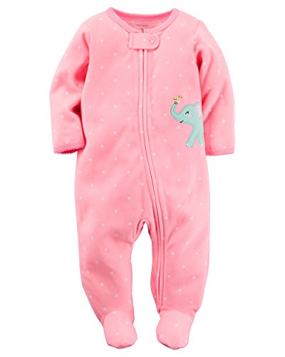 カーターズ ロンパース carter's 女の子用蛍光ピンクドットぞうと小鳥さんフリース足つきカバーオール6months(61-67cm) [並行輸入品]