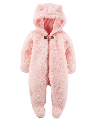 カーターズ ロンパース carter's 男女兼用モコモコフリース立体3D耳フードx足つきカバーオール (newborn(-55cm), パウダーピンク) [並行輸入品]