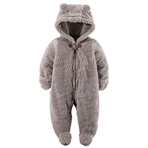 カーターズ ロンパース carter's 男女兼用モコモコフリース立体3D耳フードx足つきカバーオール (9months(67-72cm), ベアーブラウン(薄茶色)) [並行輸入品]