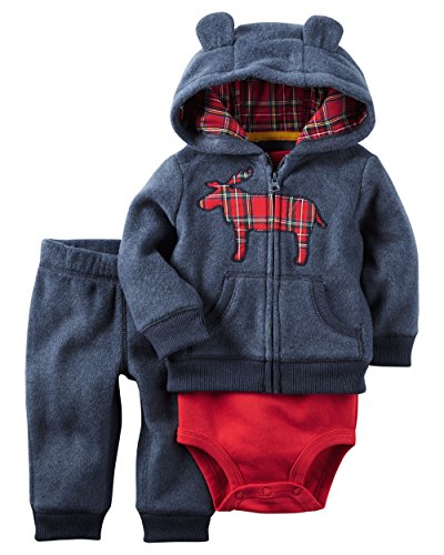 カーターズ ロンパース carter's 男の子用紺x赤チェックトナカイクマ耳フード付きフリースジャケット上下3点セット (9months(67-72cm)) [並行輸入品]