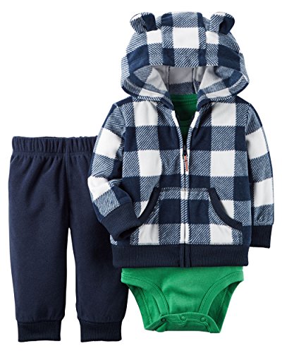 カーターズ ロンパース carter's 男の子用紺ブロックチェックフード付きフリースジャケットお出かけ用上下3点セット (9months(67-72cm)) [並行輸入品]