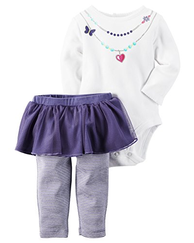カーターズ Carter's 正規品 2016新作 長袖ボディスーツ&チュチュ付ボーダーレギンスパンツお買得2点セット☆紫☆6M(65-70cm)