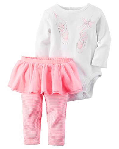 《長袖ボディスーツ2点セットの詳細》 コットン100% チュチュ ポリエステル100% 【セット内容】長袖ボディスーツとチュチュ付パンツの2点セット ★カーターズ正規品、チュチュ付パンツと長袖ボディスーツの女の子のお祝いにぴったりなお買得2点セットの登場です!普段着に、お出掛けにも大活躍します!★小股にはスナップが3つ付いているのでオムツ替えがラクチンです。★パンツにはチュチュが付いているので、ハイハイしてもヨチヨチ歩きしても、何をしても可愛いですよ!