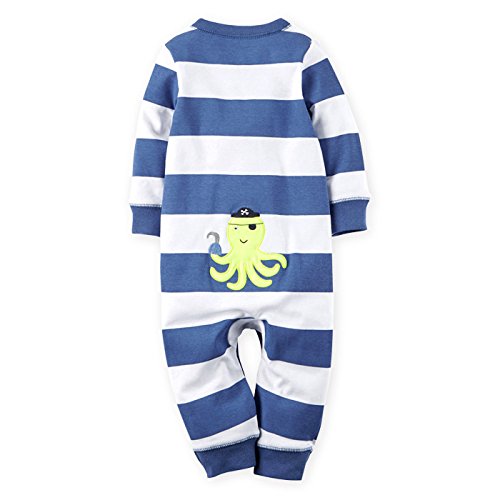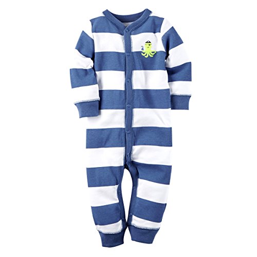 カーターズ カバーオール 男の子 ストライプ 3M ブルー×ホワイト 長袖 ロンパース ボディースーツ ベビー ボーダー [並行輸入品]