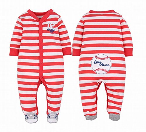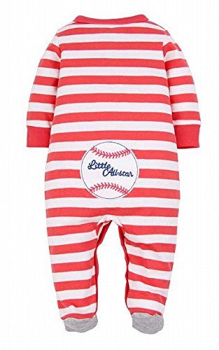 カーターズ Carter's ベビー服 カバーオール 足つき 長袖 男の子 レッドボーダー&野球 (12months(72-78cm)) [並行輸入品]