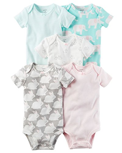 カーターズ Carter's 女の子用うさぎとゾウさんのマカロン物語半袖ボディスーツ5枚セット (24months(83-88cm)) [並行輸入品]