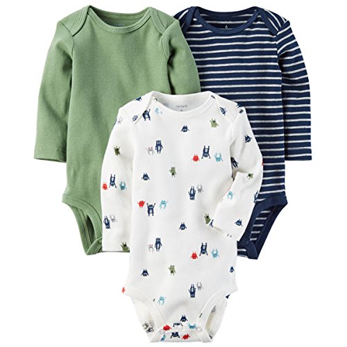 カーターズ Carter's 男の子用陽気な万歳三唱モンスター長袖サーマル編みボディースーツ3枚セット (newborn(-55cm)) [並行輸入品]