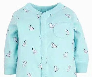 爽やかなグリーンカラーにイヌ柄のカバーオール