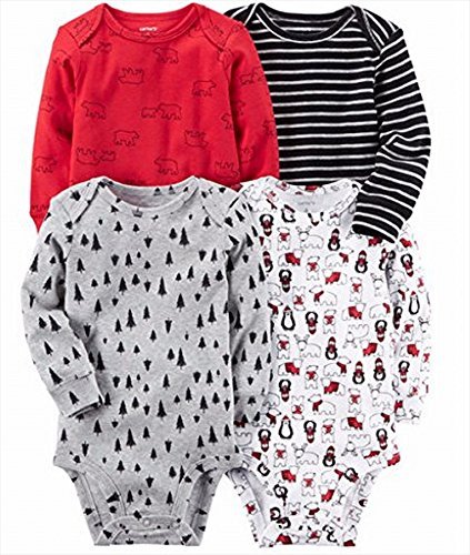 カーターズ Carter's 男の子用ペンギンxくまxトナカイのハッピーホリデー長袖ボディースーツ4枚セット (9months(67-72cn)) [並行輸入品]