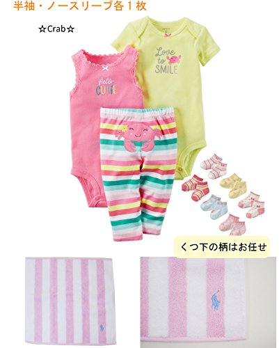 - 【セット内容】ラルフローレンからタオル、カーターズよりボディスーツ2枚+パンツ+靴下の豪華5点の合計6点