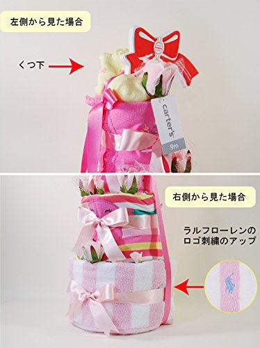 ラルフローレン,カーターズ 正規品 オムツケーキ,3段 5点セット ボディスーツ2枚+パンツ+靴下+パンパース オムツSサイズ Crab (女の子)6M(65-70cm)~9M(70-75cm)~12M(75-80cm)