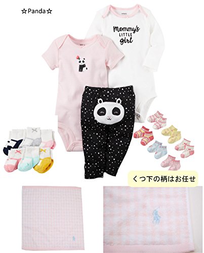 ラルフローレン,カーターズ 正規品 オムツケーキ,3段 5点セット ボディスーツ2枚+パンツ+靴下+パンパース (オムツSサイズ,Panda (女の子))
