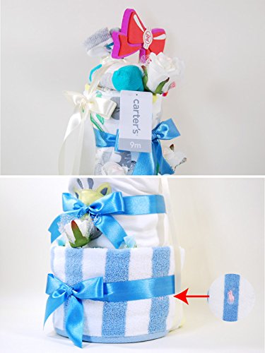 ラルフローレン,カーターズ 正規品 オムツケーキ,3段 5点セット ボディスーツ2枚+パンツ+靴下+パンパース (オムツSサイズ, Giraffe (男の子)