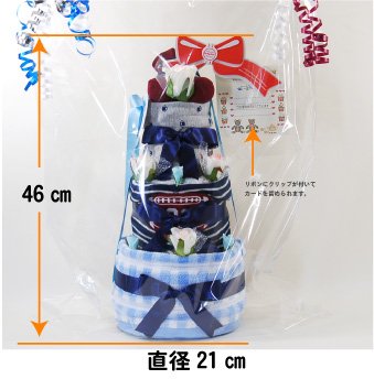 - オムツケーキの寸法 : 高さ46cm 直径21cm