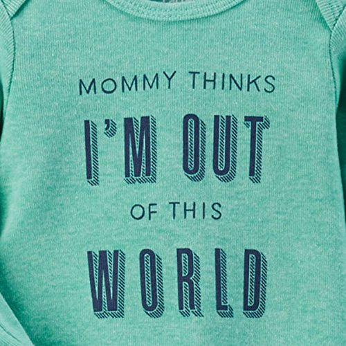 - ☆グリーンベースにMOMMY THINKS I'M OUT OF THIS WORLDのプリントと紺ベースにロケット柄の2枚がセットになったスリーパーガウンです♪♪