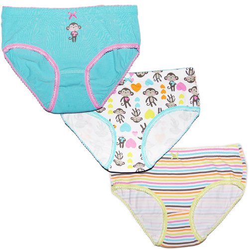 カーターズ(Carter's)女の子用エメラルドグリーンモンキー&ハート&ボーダーショーツパンツ3枚セット,出産祝いギフト,水色サル柄アンダーウェア,カラフル子供用下着・肌着【並行輸入】