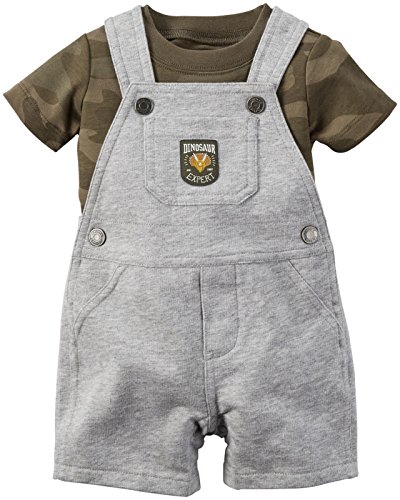 カーターズ carter's 男の子用迷彩グレー恐竜ワッペン付きショートオールお出かけ用上下2点セット (12months(72... [並行輸入品]