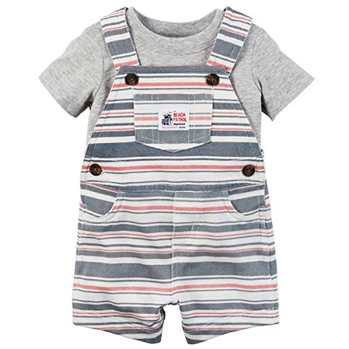 カーターズ carter's 男の子用グレーTシャツxマルチボーダーショートオールお出かけ用上下2点セット (24months(83-88cm)) [並行輸入品]