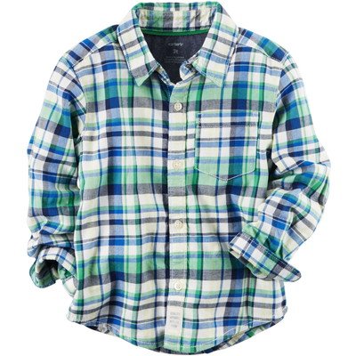 カーターズ Carter's/ ツイル プラッド ボタン-フロント シャツ グリーン トップス長袖シャツ 7歳【並行輸入】