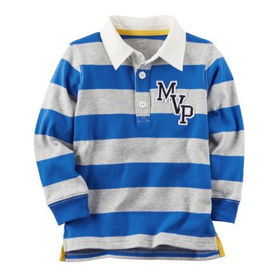 Carter's(カーターズ) ロングスリーブラグビーストライプポロ ブルー トップス長袖シャツ 3歳【並行輸入】