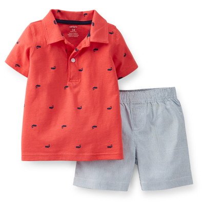 カーターズオシュコシュセール 男の子 ベビー キッズ 子供服 2015SS 春服 夏服 2015年春夏新作 上下セット 2枚組 ジャージ トップス コットン 赤 レッド くじら ショーツ 縦縞 ストライプ 青 ブルー