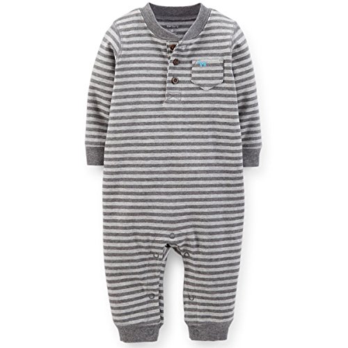カーターズ(Carter's)男の子用グレーボーダーワンちゃん刺繍入り木目ボタンお出かけ用ジャンプスーツ (newborn(-55cm)) [並行輸入品]