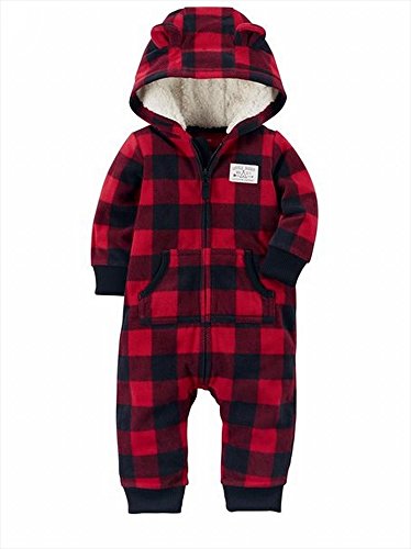カーターズ ロンパース carter's 男の子用 赤x黒バッファローチェック クマ耳付きフードフリース地ジャンプスーツ (6months(61-67cm)) [並行輸入品]
