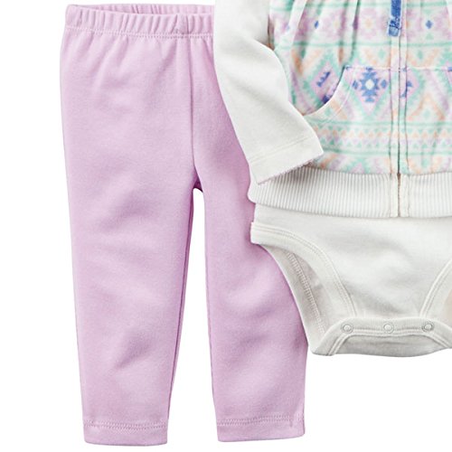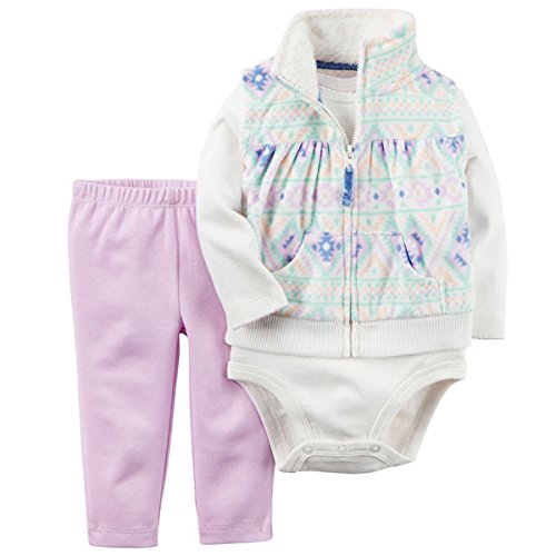 カーターズ(Carter's)女の子用カラフルネイティブ柄フリースベストx白長袖ボディスーツお出かけ用上下3点セット (18months(78-83cm)) [並行輸入品]
