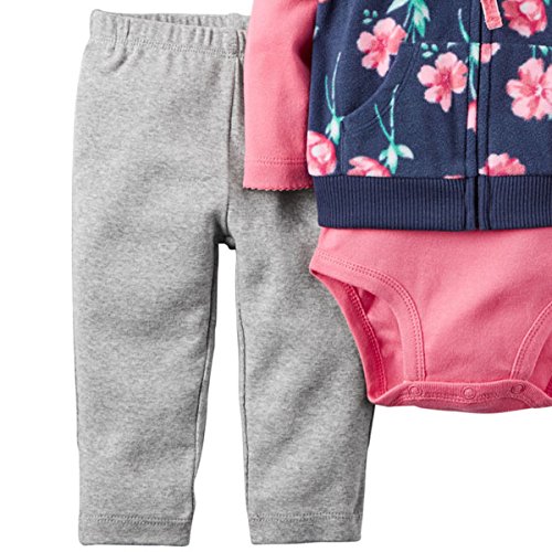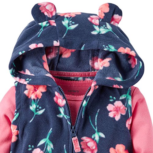 カーターズ(Carter's)女の子用紺花柄3D立体耳フード付きフリースベストお出かけ用上下3点セット (18months(78-83cm)) [並行輸入品]