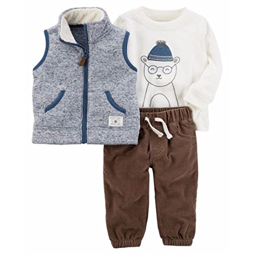 カーターズ carter's 男の子用紺SUPER CUTEワッペンもこもこフリースベストx茶色コーデュロイジョガーパンツ上下3点セット (9months(67-72cm)) [並行輸入品]