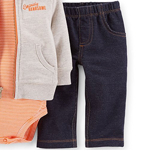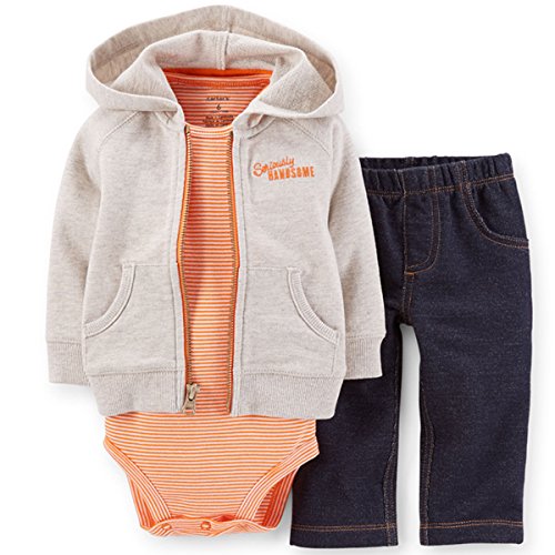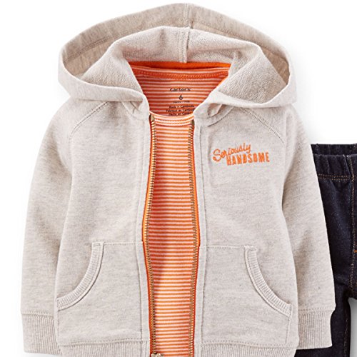 カーターズ(Carter's)2015年春夏 男の子用グレーHANDSOME刺繍入りフード付きカーディガンジャケット上下3点セット 並行輸入 (24months(83cm-86cm)) [並行輸入品]