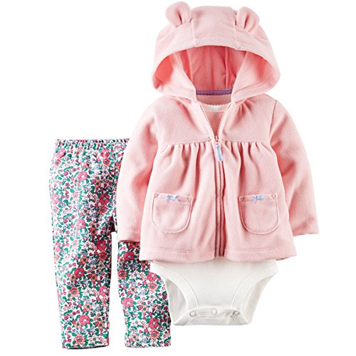 カーターズ(Carter's)ベビーピンク耳フード付きフリースパーカージャケット上下3点セット 24months(83-86cm)【並行輸入】