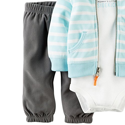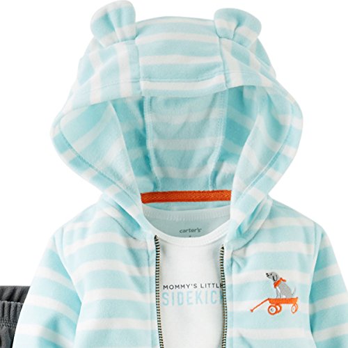 カーターズ Carter's 2015年秋冬最新作 男の子用水色ボーダー乗り物大好きワンちゃん刺繍入り耳フード付きフリースジャケット上下3点セット (24... [並行輸入品]