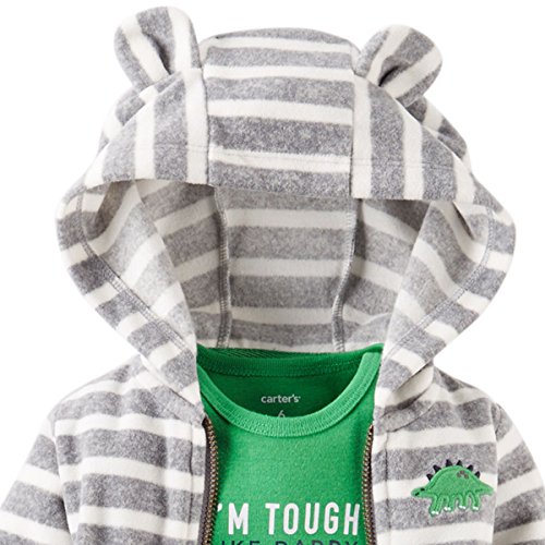 カーターズ Carter's 2015年秋冬最新作 男の子用グレーボーダー恐竜アップリケ耳フード付きフリースジャケット上下3点セット (24months(... [並行輸入品]