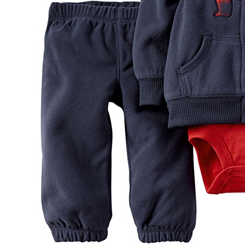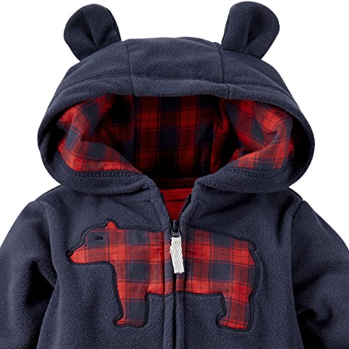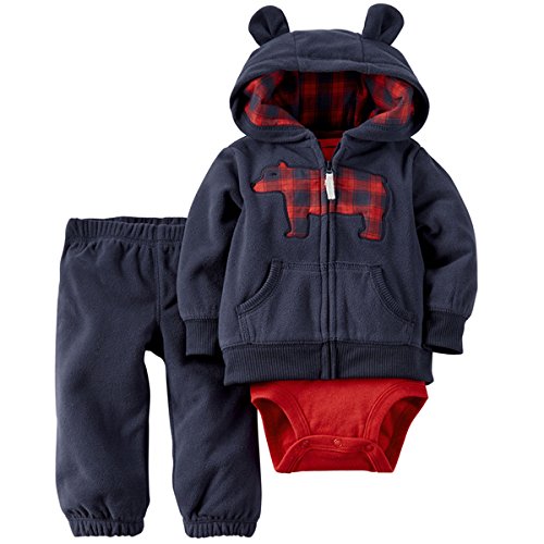 カーターズ Carter's 2015年秋冬最新作 男の子用紺チェック柄クマさんアップリケ耳フード付きフリースジャケット上下3点セット (9months(... [並行輸入品]