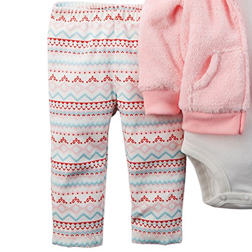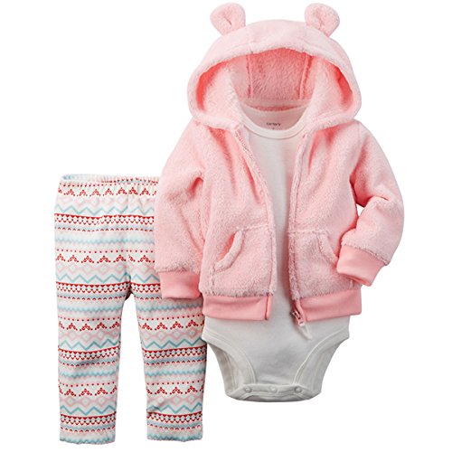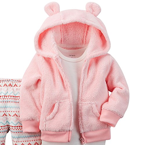 カーターズ(Carter's)2015年秋冬最新作 女の子用ベルボアベビーピンク耳フード付きふわふわパーカージャケット上下3点セット (6months(6... [並行輸入品]