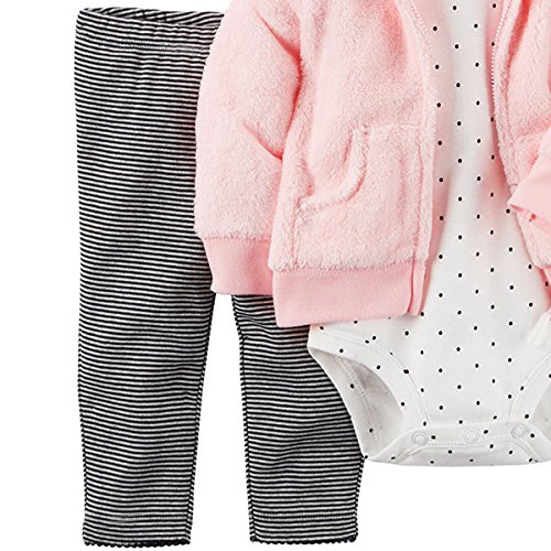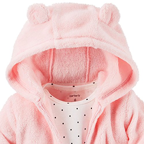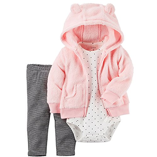 カーターズ(Carter's)女の子用ベビーピンクふかふか3D立体耳フード付きジャケットx黒グレーボーダーコーデパンツ上下3点セット (18months(78-83cm)) [並行輸入品]