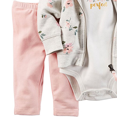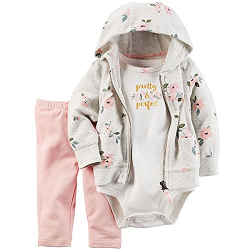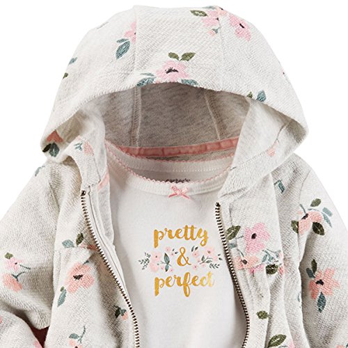 カーターズ(Carter's)女の子用薄グレー花柄パイル地フード付きジャケットxpretty perfect半袖ボディスーツ上下3点セット (24months(83-88cm)) [並行輸入品]