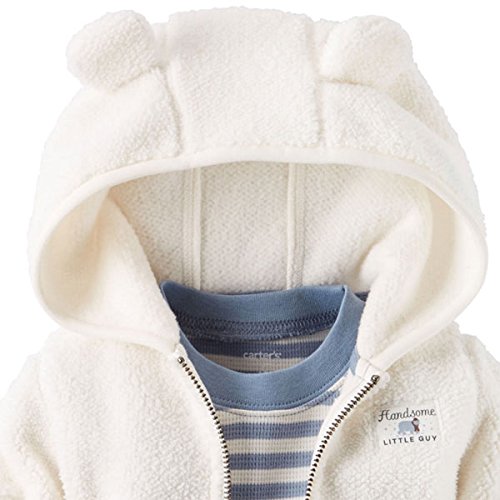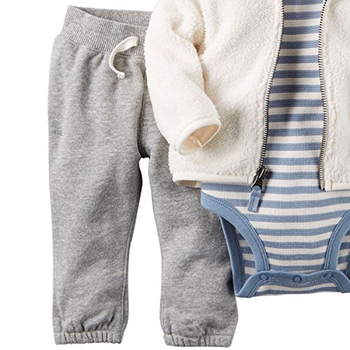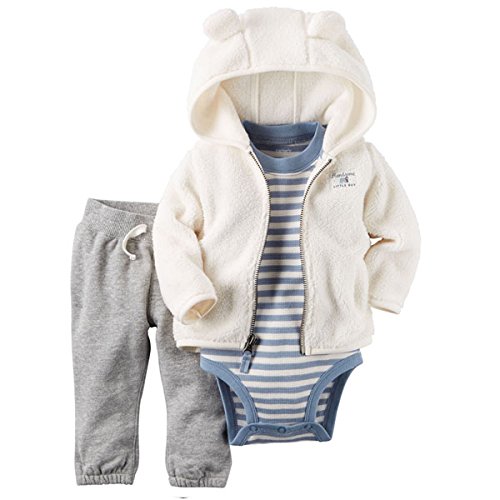 カーターズ ロンパース carter's 男の子用白モコモコ3D耳フード付きHandsomeジャケットxブルーグレーサーマルボーダーボディスーツお出かけ用上下3点セット (12months(72-78cm)) [並行輸入品]