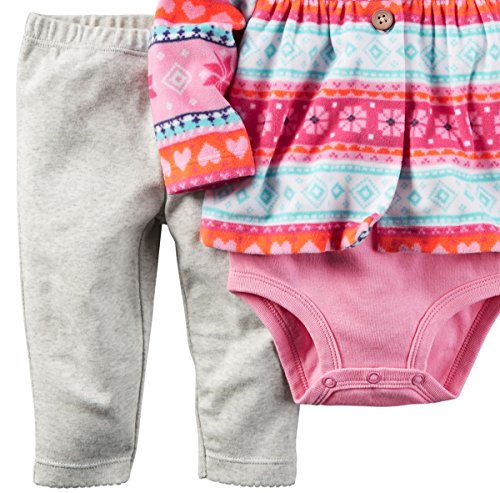 カーターズ Carter's 正規品 フリース 裏起毛 長袖 ピンク ハートノルディック柄 パーカー+半袖ボディスーツ+レギンスの3点セット9M(70-75cm)
