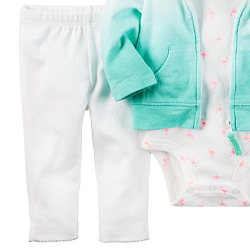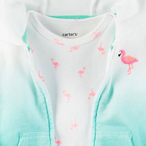 カーターズ(Carter's)女の子用白xミントグラデーションフラミンゴフード付きジャケットxコーデパンツお出かけ用上下3点セット (24months(83-88cm)) [並行輸入品]