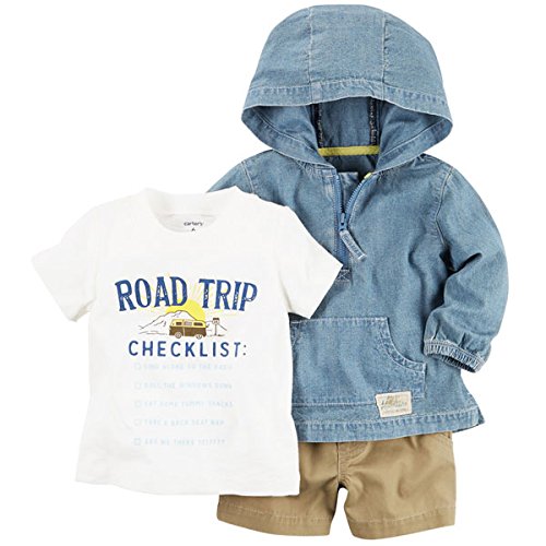 カーターズ carter's 男の子用シャンブレープルオーバー+白半袖Tシャツ+ベージュ短パンお出かけ用上下3点セット (18months(78-83cm)) [並行輸入品]