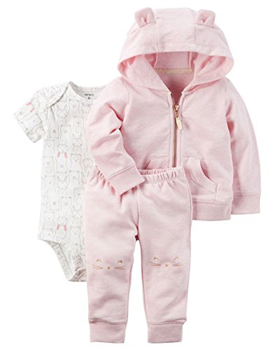 カーターズ carter's 女の子用ベビーピンクねこさんなりきり耳付きフードジャケットxアニマルボディースーツ上下3点セット (12months(72-78cm)) [並行輸入品]