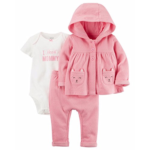 カーターズ carter's 女の子用ピンクドットくまさんポケットフード付きジャケットxI Heart MOMMYボディースーツ上下3点セット (12months(72-78cm)) [並行輸入品]