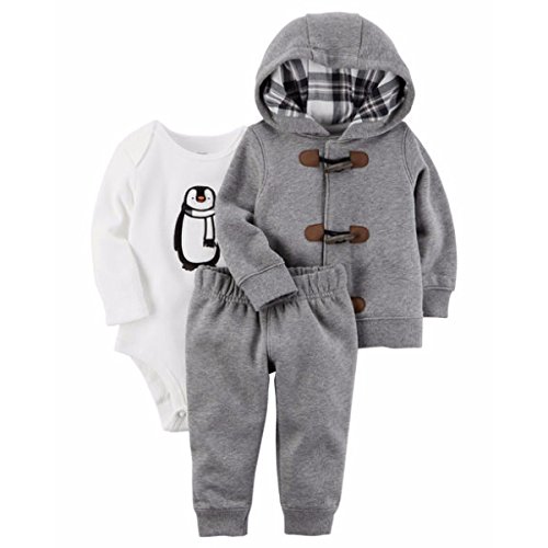 カーターズ carter's 男の子用グレートグルボタンフード付きジャケットxマフラーペンギンさんボディースーツ上下3点セット (12months(72-78cm)) [並行輸入品]
