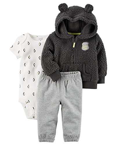 カーターズ Carter's 正規品,耳付きもこもこフードパーカー3点セット,半袖ボディースーツ,パンツ,パーカー,防寒着 セット/ (6M(65-70cm), チャコールゴレー)