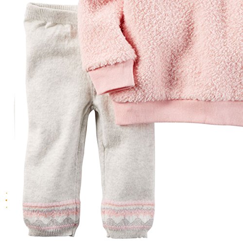 カーターズ(Carter's)女の子用ピンク長袖モコモコトレーナーxグレーニットパンツお出かけ用上下2点セット (12months(72-78cm)) [並行輸入品]