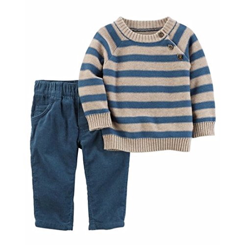 カーターズ carter's 男の子用紺ブラウンボーダーケーブルニットセーターx紺コーデュロイパンツ上下2点セット (24months(83-88cm)) [並行輸入品]