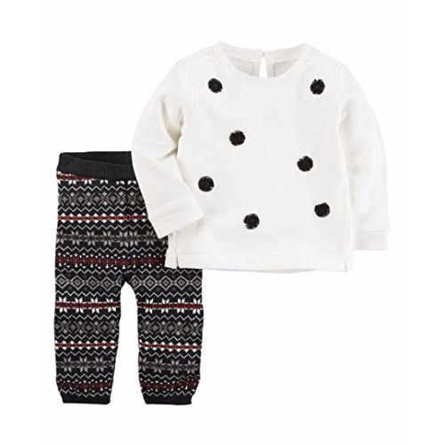 カーターズ Carter's 女の子用黒ポンポン付き長袖チュニックx黒インタルジアセーターコーデパンツ上下2点セット (24months(83-88cm)) [並行輸入品]