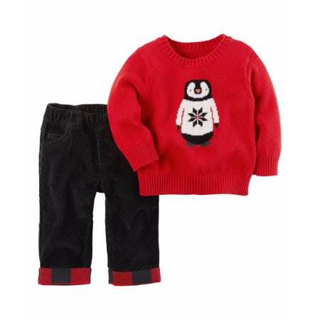 カーターズ carter's 男の子用赤ペンギンさんケーブルニットセーターx黒コーデュロイパンツ上下2点セット (18months(78-83cm)) [並行輸入品]